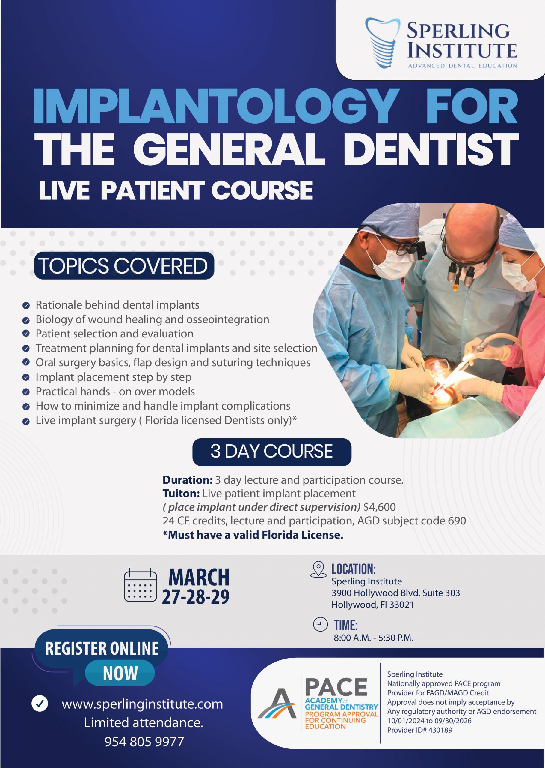 - Live implant surgery (Florida licensed Dentists only)